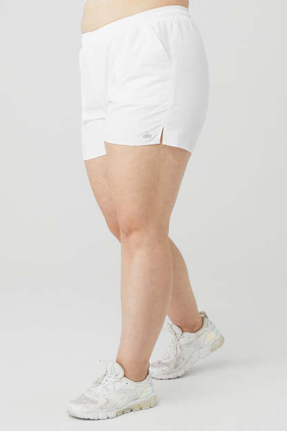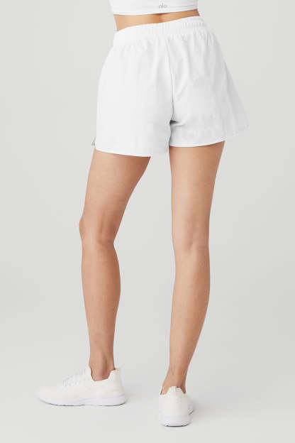 Bend, stretch, hike and explore new heights in the Alumni Short. Made in our lightweight, sport-ready woven fabric, it features a flattering high-waist design, an easy internal drawcord, and side slit pockets to store keys, lip balm and other small essentials. Go head-to-toe and hit the pavement with the matching cropped pullover.